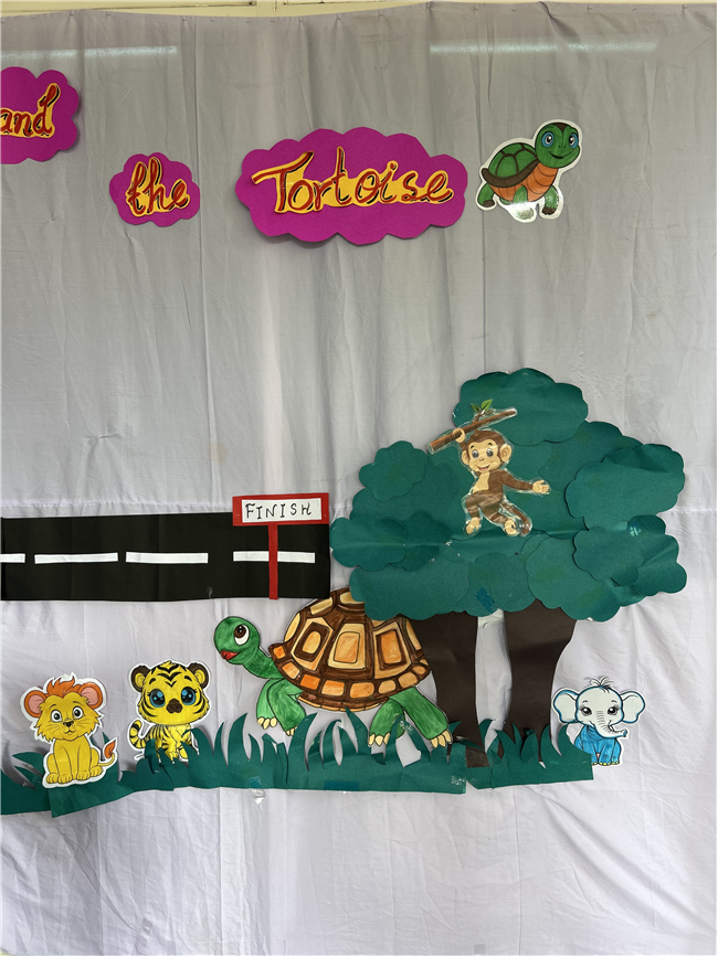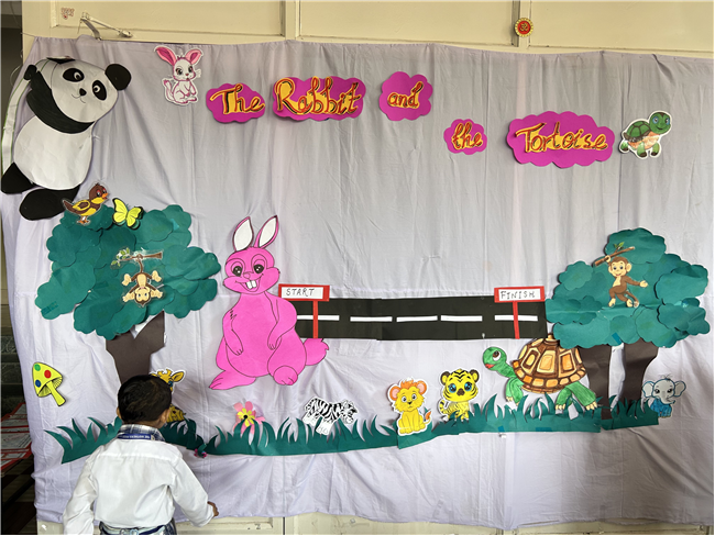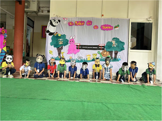 A delightful story-telling session on “The Rabbit and the Tortoise” by our young learner at The Mother’s Pride School, Prayagraj. This classic fable tells the story of a fast and proud rabbit who challenges a slow but steady tortoise to a race. Confident of winning, the rabbit takes a nap midway — only to wake up and find that the tortoise has crossed the finish line first! The story beautifully teaches us that slow and steady wins the race.